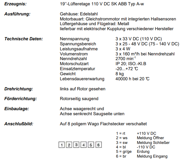 19英寸風(fēng)扇級別110 V DC SK ABB Aw型