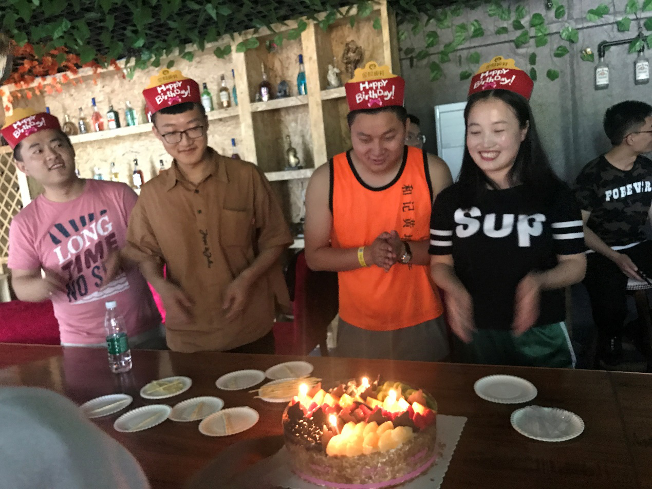燒烤過后,公司給5月生日的小伙伴們一起慶祝過生日。我們一起唱著動聽的生日快樂歌,每個(gè)人都洋溢著幸福的笑容。壽星們的臉上,更是幸福滿滿。