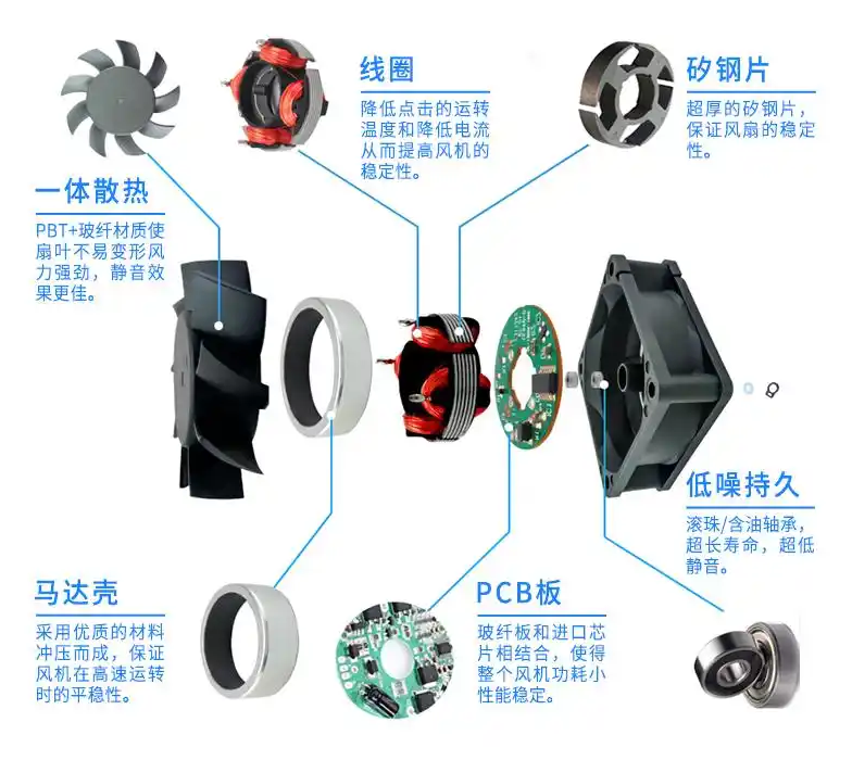 DC(Direct Current,直流)風機指的是使用直流電源驅動的風機,其電機通常是有刷或無刷直流電機。直流電源的電壓和電流波動較大,因此DC風機的輸出功率和機械效率相對較低,但可實現(xiàn)更高的轉速和更小的尺寸。同時,DC風機在低速、低負載運行時具有很好的扭矩性能和控制性能,應用于電腦、通信設備、電動工具和小型家電等領域。