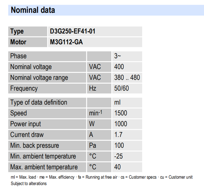 D1G160-DA19-52風量:980m³/h 電壓:24v 電流:5.6A 功率:112W 轉(zhuǎn)速:1250r/min
