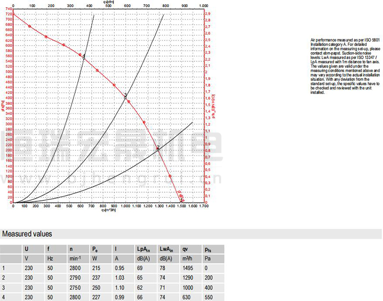 德國ebmpapst R2E250-RB06-01風機曲線圖