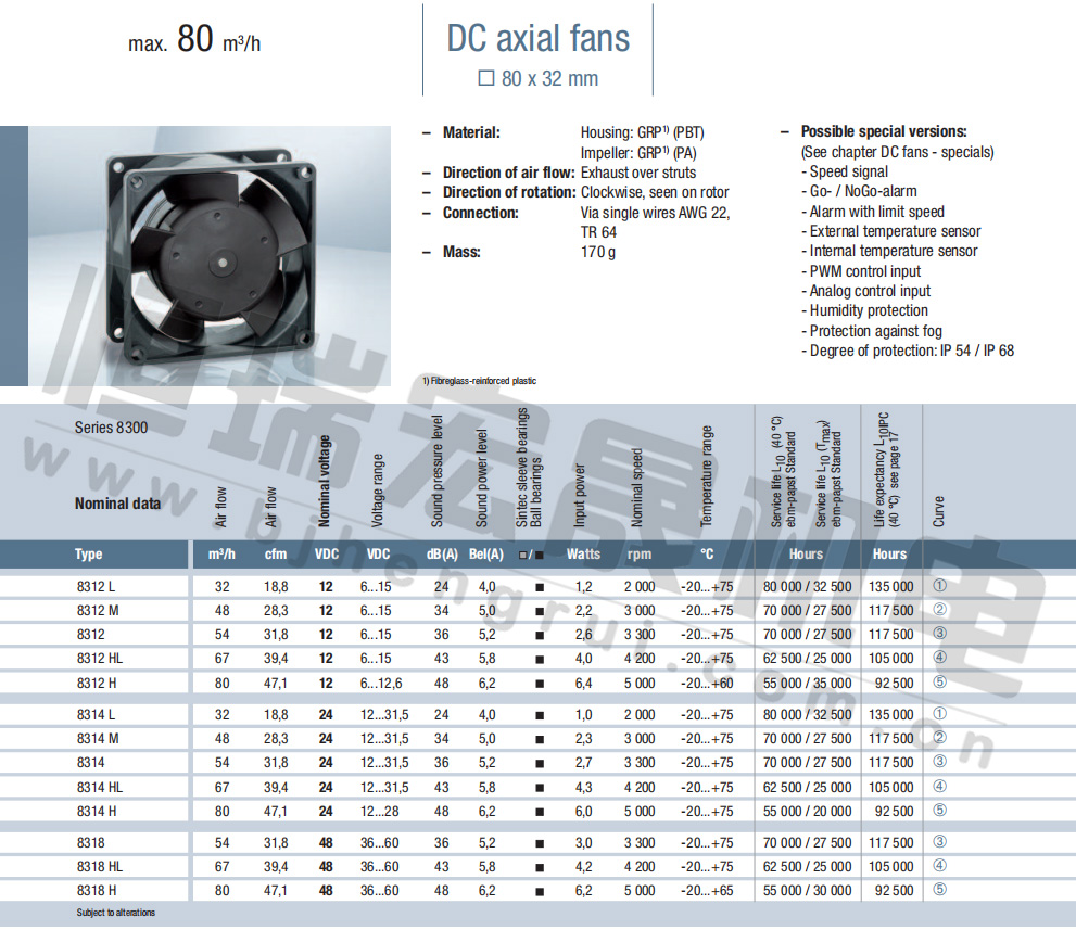 8314H風(fēng)量:80m³/h 電壓:24v 噪音:48Db 功率:6.0W 轉(zhuǎn)速:5000r/min
