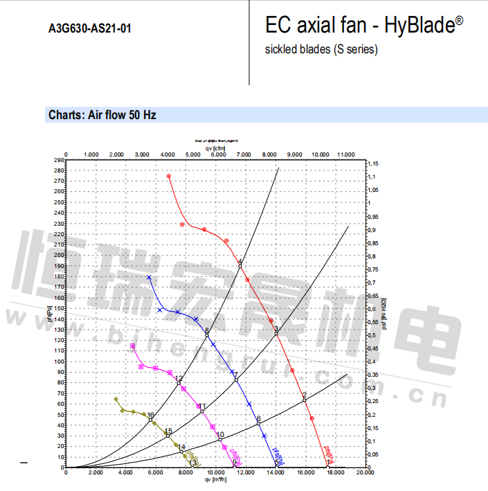原裝軸流ebm風(fēng)機(jī)A3G630-AS21-01的曲線圖