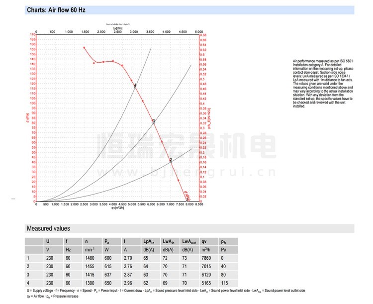 德國(guó)ebmpapst S4E450-AO09-01 軸流風(fēng)機(jī)結(jié)構(gòu)風(fēng)量圖