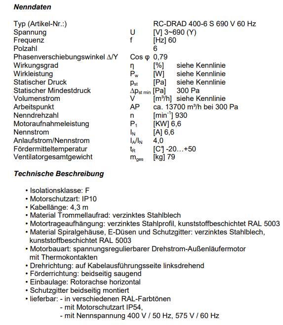 | RC-DRAD 400-6 S 3~690 V/60 Hz |
