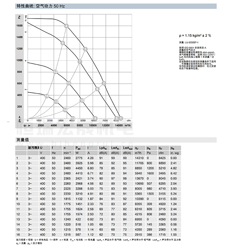 AHU風機 450mm 14310m3/h K3G450-PA31-65