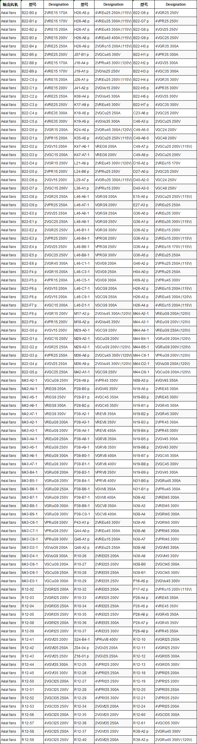 軸流風(fēng)扇交流單相和三相電動(dòng)機(jī)(2VRE / 4VRE / 2VGR / 4VGR / 2VPR / 4VPR / 2VGC / 4VGC / 2VGV / 4VGV)