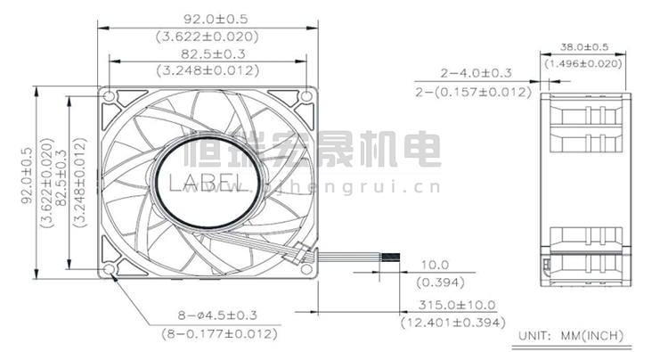 92*92*38mm 臺達Delta風機結構圖