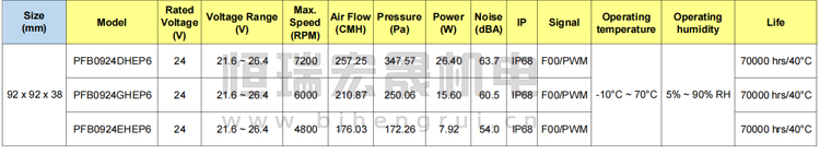 92*92*38mm 臺達Delta風機參數(shù)表